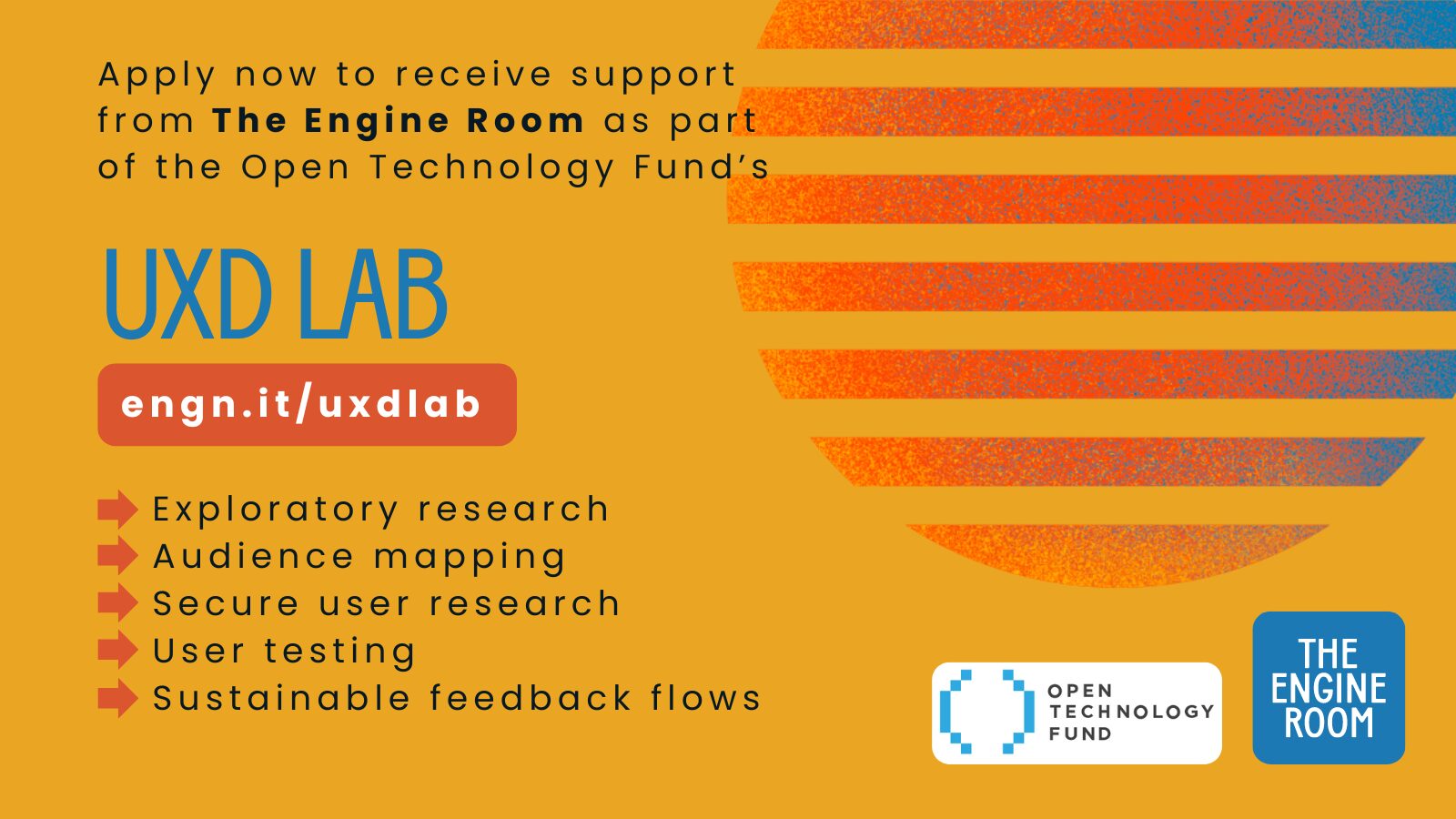 You can learn more about the UXD Lab on their website and apply directly for support from The Engine Room via the UXD Lab Support Request form.