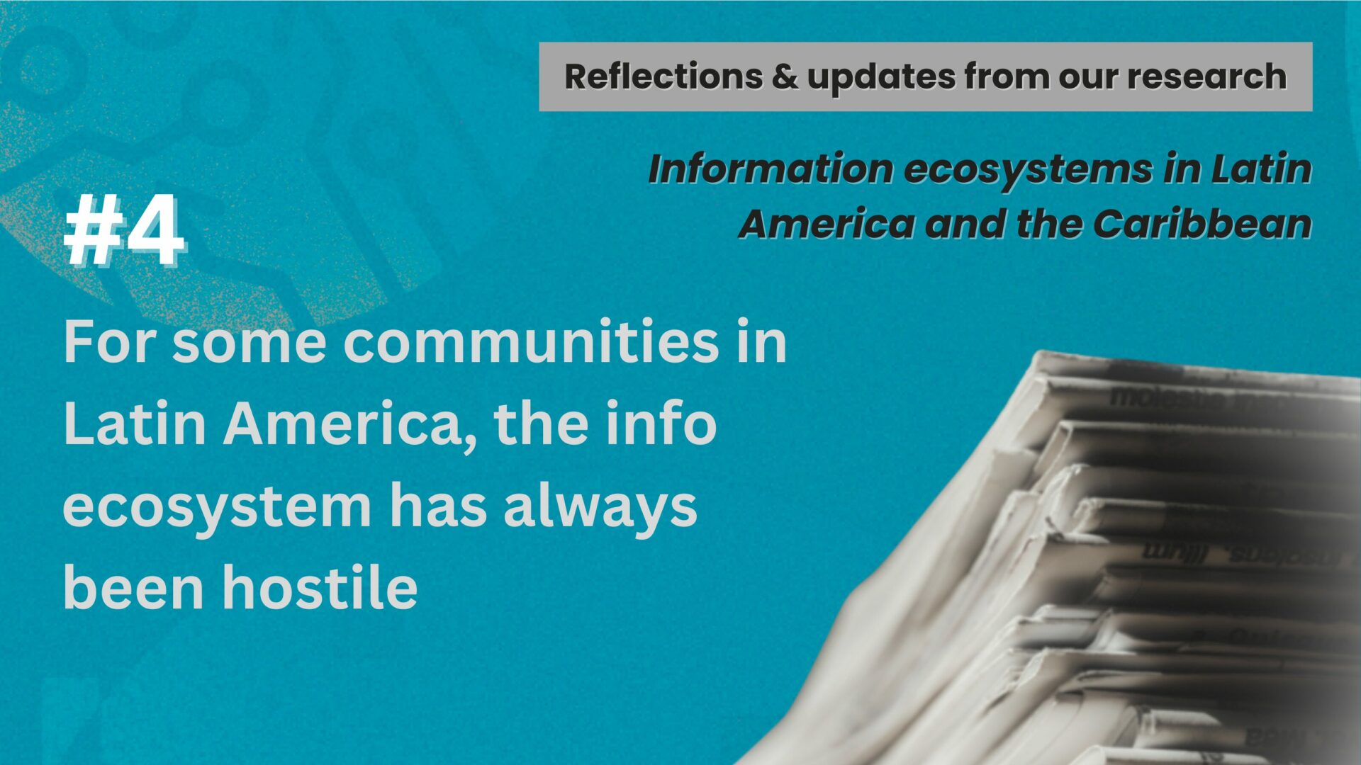 Though digital technologies undoubtedly have a role to play in the current shape of information ecosystems in Latin America and the Caribbean, the practitioners we’ve been talking to have highlighted how for many people in the region, especially those who are part of historically oppressed and marginalised groups, the information ecosystem has always been hostile.