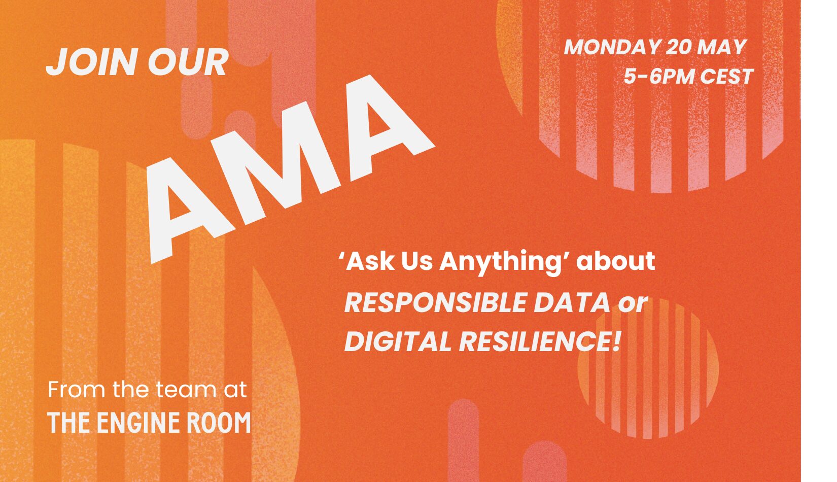 We started hosting AMA sessions last year, and found that they went really well! We loved getting a chance to talk to a variety of people working in social justice organisations in different countries about responsible data, digital resilience and using tech and data for their work.